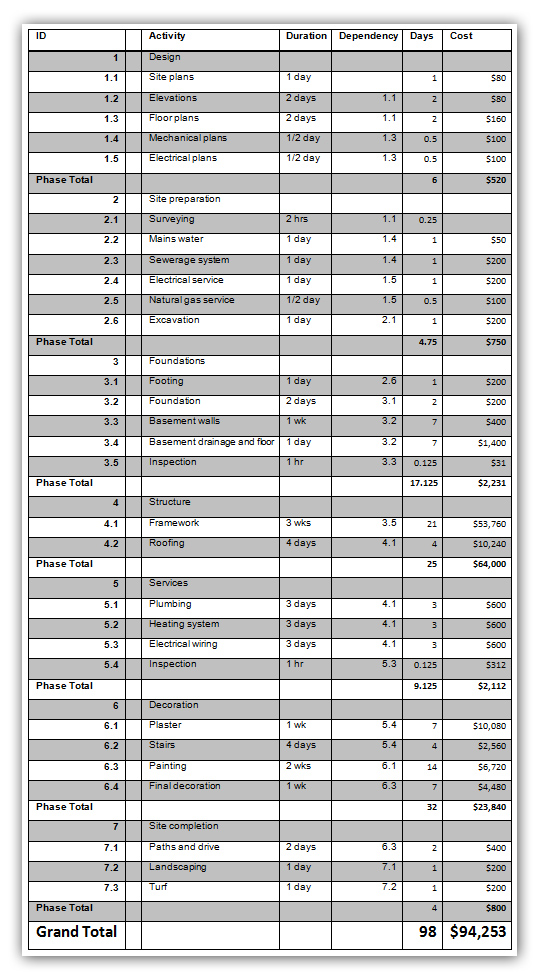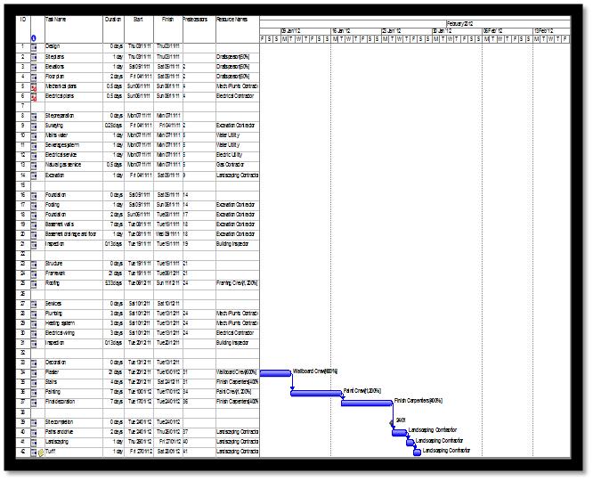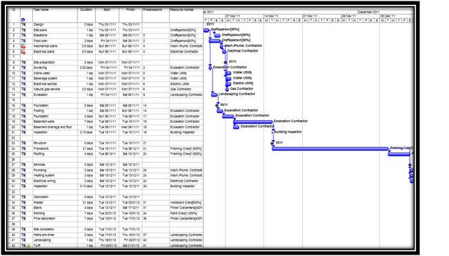 Note: As per the defined days in the tasks the project is estimated to be completed on 28/01/12. It is not possible to finish on the deadline given of 02/01/12.